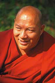 | | Khèmpo Deunyeu Rimpoché | Khèmpo Deunyeu Rimpoché fut le plus proche disciple de Bokar Rimpoché. Les deux lamas ont entretenu une relation très étroite depuis leur enfance, relation qui ne s’est jamais distendue par la suite. Tout comme Bokar Rimpoché, Khèmpo Deunyeu Rimpoché est né dans les hauts plateaux au climat très rude qui s’étendent sur l’ouest du Tibet, en 1943, soit trois ans après celui qui allait devenir son maître. De sa famille étaient issus, dans le passé, plusieurs très bons lamas, notamment deux érudits: Mèndong Tsampa Rimpoché à qui l’on doit un certain nombre de traités et Sourou Khèmpo. Ses parents étaient des gens d’une grande pauvreté, si démunis qu’il leur était difficile d’assurer la subsistance de leurs trois enfants. Comme cela se faisait dans ce cas au Tibet, ils ont préféré les laisser au monastère, choisissant celui de Bokar Rimpoché, qui n’était pas loin. Khèmpo était l’aîné des trois. Il devait avoir alors douze ans. Au monastère, les enfants n’avaient d’abord personne pour s’occuper d’eux et n’avaient pas de chambre. La nuit, ils dormaient à même le sol, souvent avec les chiens pour profiter de leur chaleur. Bokar Rimpoché et son tuteur, Lama Teundroup Tachi habitaient dans la même pièce. Chaque soir, Lama Teundroup Tachi confectionnait à la fin du repas un chambou, c’est-à-dire une boule de pâte serrée dans la main en lui imprimant la marque des doigts et qu’on jette dehors en la consacrant aux esprits. Khèmpo avait si peu à manger qu’il guettait le moment où Lama Teundroup Tachi jetterait le chambou, se précipitait pour le prendre et se sauvait pour le manger. Nyerpa Tratcheu, l’économe du monastère, remarqua vite ce jeune garçon si pauvre et en eut pitié. Il suggéra à Bokar Rimpoché de le prendre au service du ladrang (la résidence du lama), afin qu’en échange de son travail il reçoive de quoi manger et de quoi se vêtir. Le jeune moine est donc devenu serviteur au ladrang, affecté, selon les besoins, à des tâches variées: la cuisine, l’entretien du feu, la surveillance des moutons et des yaks, etc. Il ne savait bien entendu pas lire, mais manifestait un fort désir d’apprendre. Certains pensaient qu’il n’y arriverait pas, ou que cela ne lui servirait pas, mais lui insistait beaucoup. Finalement, Bokar Rimpoché lui-même commença à lui enseigner les lettres de l’alphabet et vit qu’il assimilait avec une grande facilité. Rapidement, le jeune garçon s’est mis à lire des textes et parvenait à comprendre leur sens. Son intelligence s’est révélée extrêmement vive. Il comprenait immédiatement tout ce que Bokar Rimpoché lui expliquait. Sa soif de savoir était si ardente que, dès qu’il avait un moment de libre, il en profitait pour prendre un livre et l’étudier; il retenait énormément de choses par cœur. Chaque fois qu’il voyait un ouvrage nouveau il voulait le lire. Contrairement à la plupart des enfants, il n’était nullement nécessaire de le pousser pour qu’il étudie. Il fallait au contraire le freiner, car il avait tendance à négliger son travail pour satisfaire son désir de connaissance. Arrivé en Inde en compagnie de Bokar Rimpoché, après bien des difficultés dues à la fuite du Tibet et aux premiers temps de l’exil, Khèmpo Rimpoché a d’abord fréquenté l’école tibétaine de Darjeeling, pendant cinq ans. Il y étudiait le tibétain classique des textes, le tibétain oral et l’anglais. Il obtenait chaque année la première place à l’examen final. Il s’est ensuite rendu à l’université tibétaine de Bénarès où il a suivi un cycle de neuf ans d’études sortant, encore une fois, premier de sa promotion. Refusant ensuite un bon poste qu’on lui proposait, en raison de ses brillants résultats, à Dharamsala, le siège du Dalaï-Lama et du gouvernement tibétain en exil, Khèmpo Rimpoché préféra rejoindre son précieux maître qui terminait alors une retraite à Sonada, non loin de Darjeeling. Il a ensuite assisté Bokar Rimpoché dans monastère de Mirik dans toutes ses tâches: formation des moines et des lamas du monastère, enseignement des Occidentaux, accomplissement des rituels, etc. Amoureux de la pratique autant que de l’étude, il consacre une grande partie de son temps à la méditation. Depuis le décès de Bokar Rimpoché en 2004, il assume entièrement la direction du monastère.
